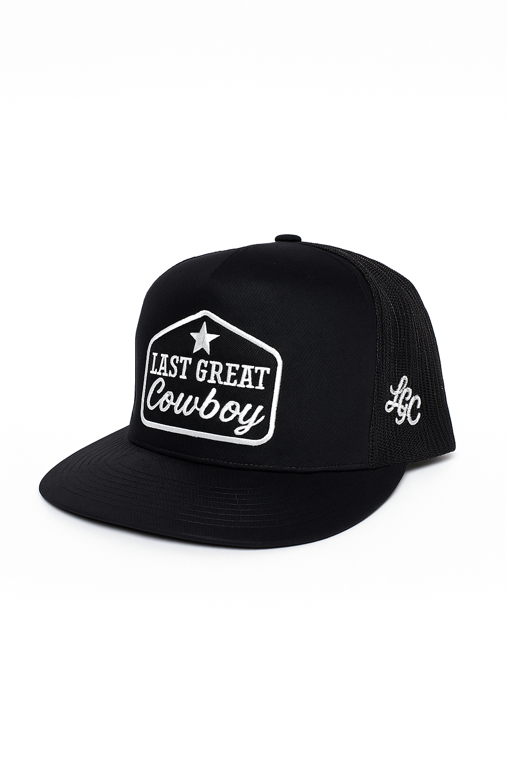 Built for those who ride their own trail, The Original is our flagship hat and a nod to every modern cowboy chasing legacy over likes. Classic, clean, and bold, this 5-panel trucker features our embroidered Last Great Cowboy badge up front and "LGC" script on the mesh side — a quiet stamp of defiance.